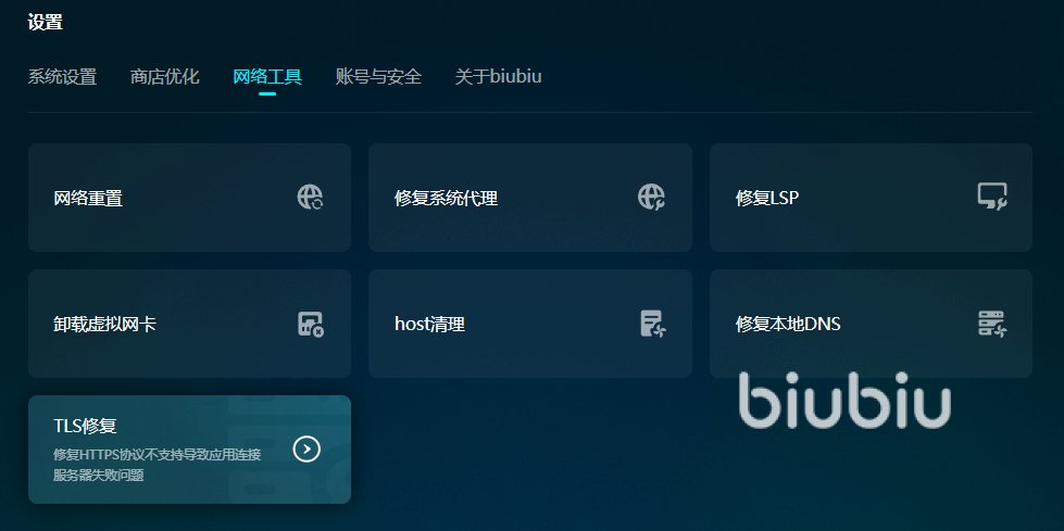 biubiu还能从其他方面来优化网络环境,比如使用工具将多余的虚拟网卡卸载了,或者是将网卡重置一下,这样就不会出现网页无法打开,或者电脑网卡异常崩溃了。它里面支持优化商店,经常玩游戏的宝子们在商店优化完成以后,可以更顺畅的购买游戏。