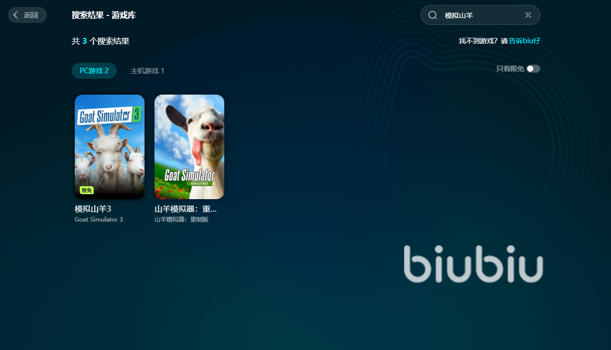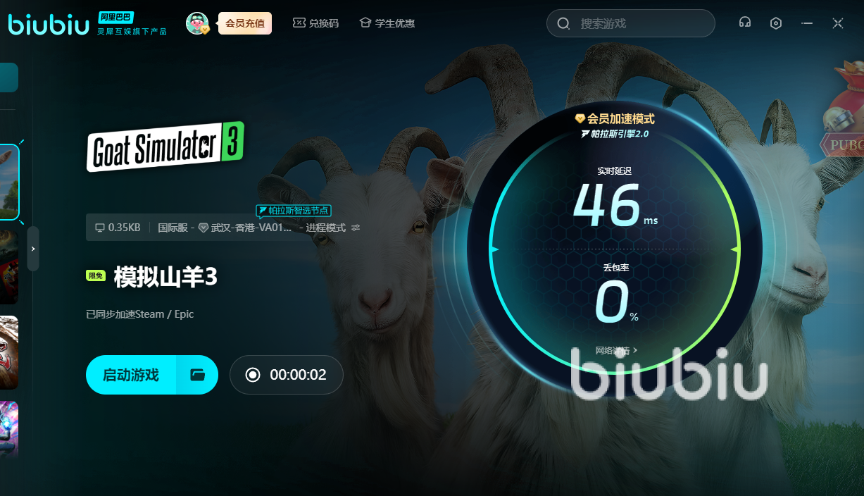 该作品解压之处就在于可以操控山羊横冲直撞,造成各种破坏和有意思的事件,游戏最容易出现问题的时刻也是这时候,因为大量的数据一瞬间涌现,极易造成错误,biubiu则可以智能加速,让大家的电脑能更轻松地处理庞大的数据而不会造成丢失的情况,这样再去体验的时候就不用畏手畏脚,也不必担心用力过猛直接退出,而且biubiu还经常有限免活动,除了山羊,其它一些热门新作也可以抢先享受到免费服务!