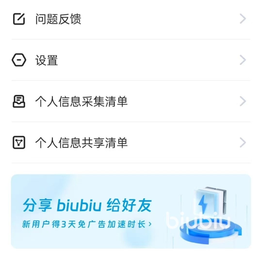 然后就是重头戏了,让biubiu进行加速了。其实大家到此时应该发现了,目前只注册了账号,但是所有步骤包括加速开启,都没有什么障碍。这是因为biu仔送给新用户3天的免广告使用时间的,我们可以任意找到自己喜欢的手游开启加速,拥有超棒的状态去玩。这个好消息当然不能独享了,可以分享给自己的好友,大家一起欢度快乐时光哦。