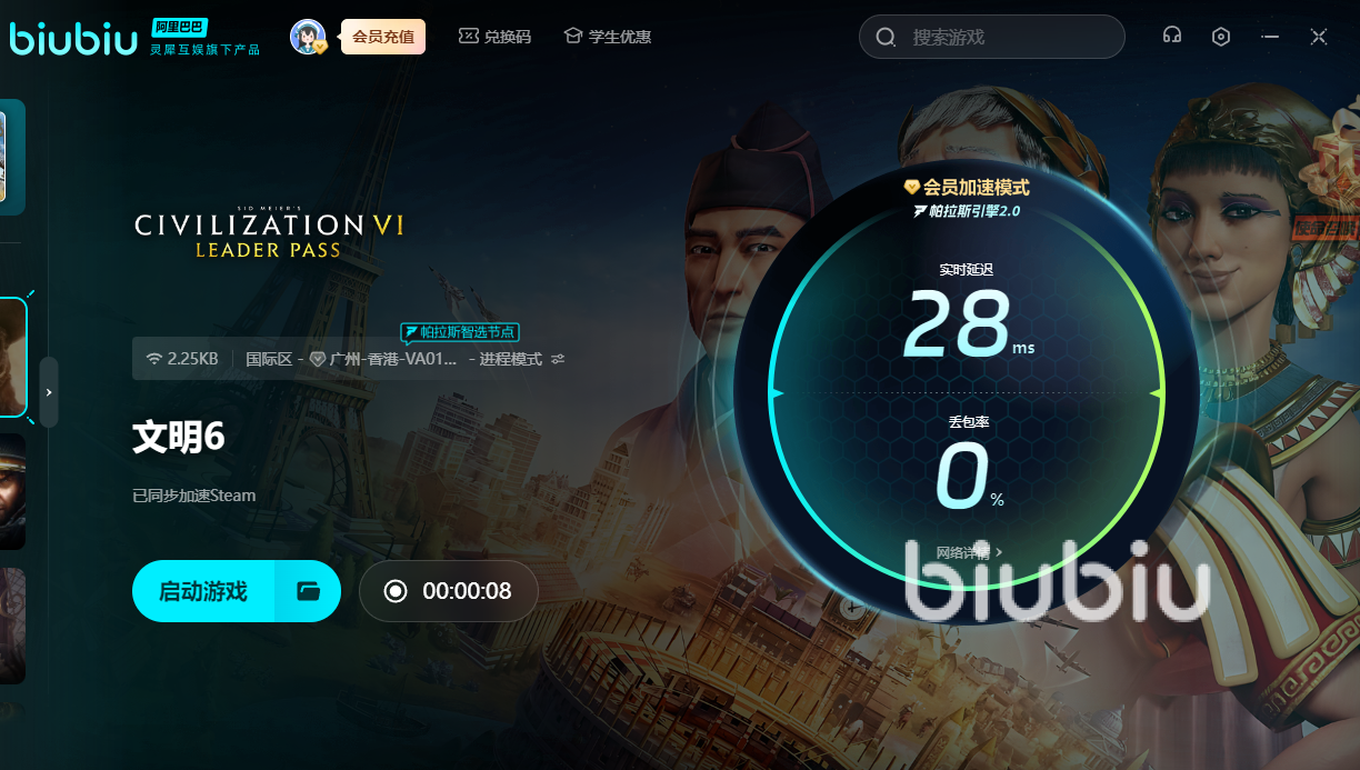 在文明6前期当中,大家延迟过高的话,又不能快速打造各种城墙以及士兵。采用biubiu之后,自然可获得极速网络,让你更快建造出一片宏伟的文明帝国。如果打造到一半就突然闪退的话,那下次想要欣赏或者使用就要再次打造了。使用加速器后,自然可稳定打造一个设施或者城市,让你没有后顾之忧。如果出了新的兵器或者玩法的话,大家想要继续上线体验,不得不重新下载。用上加速器后,下载起来自然更快。