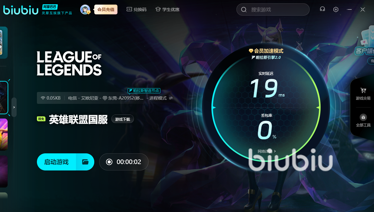 有的人为了更好地玩好lol,就特地准备了a卡。那么a卡玩lol掉帧严重怎么办?其实跟你的性能配置没有直接联系,究其原因还是网速过于差了。这时用上biubiu之后,即可稳住帧率,让你更快进入峡谷内与其他人战斗,并获得好评。