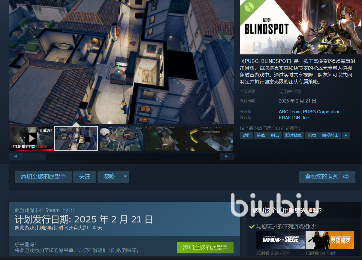 PUBG BLINDSPOT已经确定于2025年2月21日在Steam平台正式上线试玩版,试玩版将包含游戏的核心玩法内容,如新角色、地图、功能等,让大家能够提前感受这款新作的独特魅力。