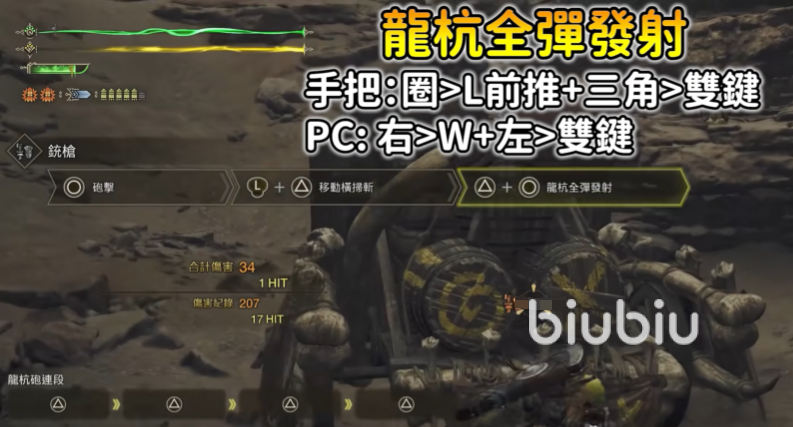 想要把子弹全部打空还有个快速连招方式,装填完子弹之后用○进行炮击,然后用L键位加↑键位进行移动的横扫战,再继续接上来双键,用↑跟○进行搭配,就可以把龙杭全弹发射技能用出来了,扫射出来大量的伤害了。