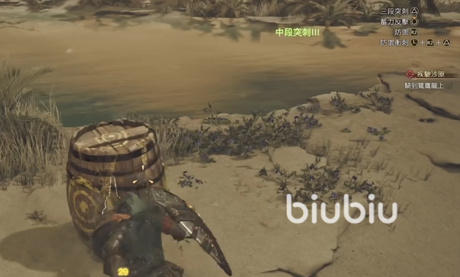 防御完我们需要接上攻击,分成两种情况,如果是距离比较近的,就用R1进行盾牌突刺攻击,要是距离比较远,就按↑+○这两个按键,就可以飞身跃入突刺了,找准时机打输出。