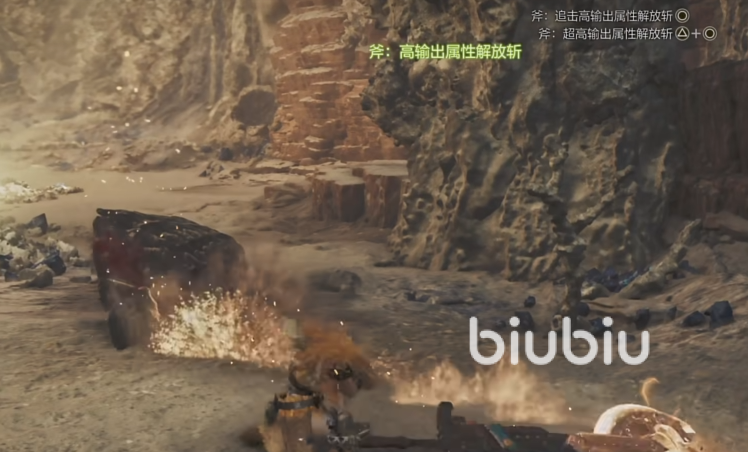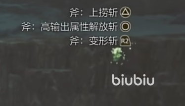 切换成为斧形态之后,攻击是变的更加笨重的,使用↑按键就成为了上捞斩了,○则是属性解放斩,如果用↑+○就是具有高输出属性的解放斩了,使用R2按键,就是斧状态的变形斩了。要是想更灵活一点,可以在按攻击键的时候轻推方向键,这样就可以做出来后退斩,左右移动斩这种,不过武器实在是太大了,所以整体移动速度是比剑形态要慢上很多的。