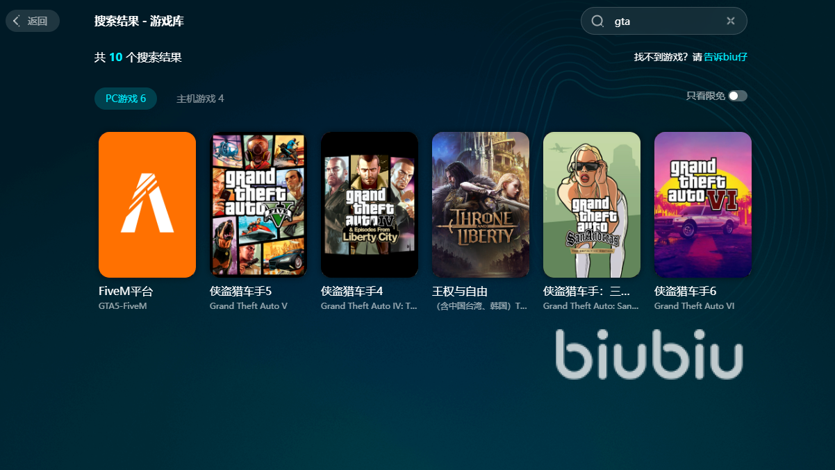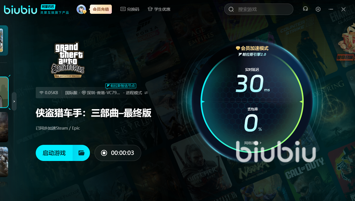 Gta作为一款享誉海内外的开放世界大作,用国内网络很难进去畅玩。这里推荐大家使用biubiu,优化网络后,自然可进去一览异世界中的风格,与世界玩家一同嗨玩。对于新人来讲,可领取3小时的免费加速。另外新老用户输入【biubiu不卡顿】,便可额外领取三天免费加速。要是前期做主线任务时太卡的话,就不能完成并领取任务经验。采用加速器后,就可轻松快速完成主线、支线任务,获得海量经验。