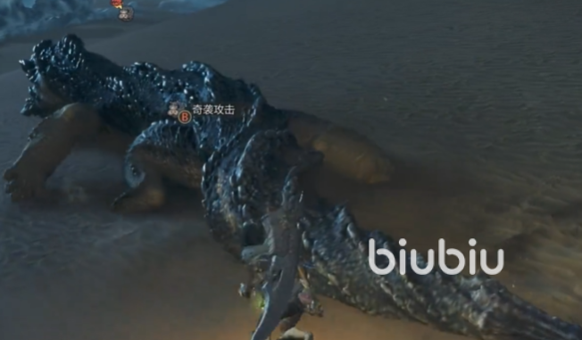 我们在打怪之前,还有个偷袭功能,需要我们从背后悄悄的靠近它们,这时候会出现按键提示,奇袭攻击可以造成高额的伤害。等怪物转身的空档,还可以趁机打几下对输出,后面就是需要走位进行对战了。