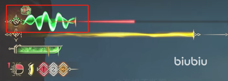 打的时候时刻注意自己的血条,也就是绿色能量条,上面出现了闪电状的波动,就意味着残血状态了,怪物下一个如果是大招,我们被命中就会直接死亡。此时大家要做的事情就是立马拉远距离撤出战斗范围,直至血条回复正常状态。