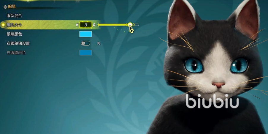 然后把眼睛的颜色更改下,调整成周围一圈是蓝色的,瞳孔调大一点,到4比较正常,想要更萌就调整到2,颜色选择黑色。