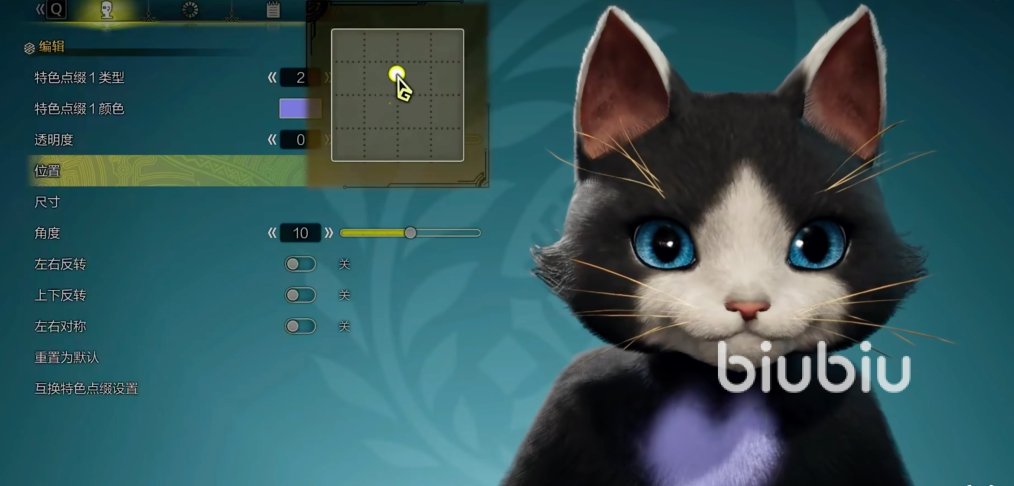 最后进入特点点缀选项,在猫猫身上抠出来不同形状的区域,爱心或者猫爪状都行,调整这部分毛色成为浅色,就非常像了。