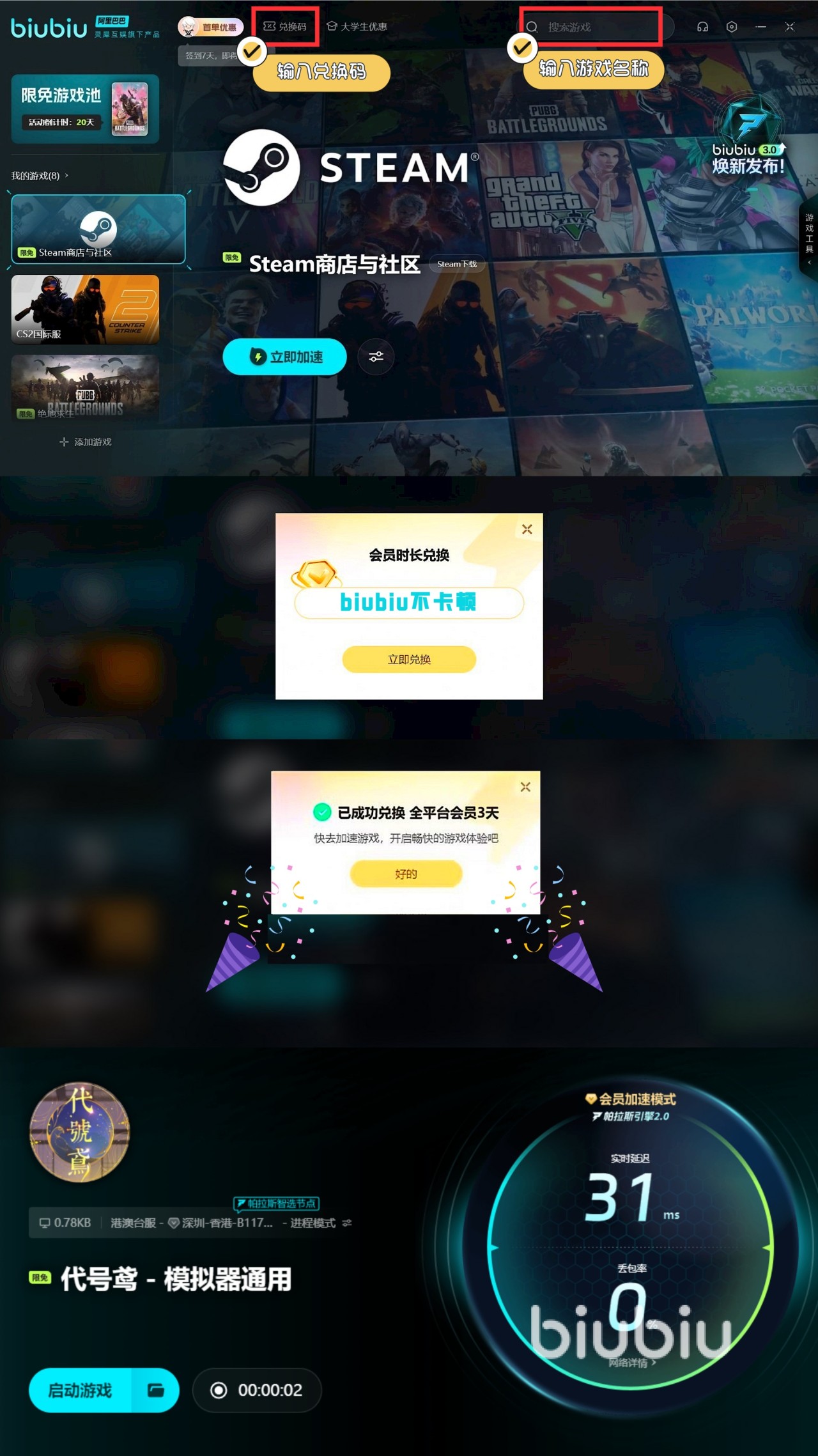 考虑到有些玩家希望到时可解锁更多福利,其实只需去点击兑换,然后借助口令【biubiu不卡顿】大家就能顺利领取到72h加速时长,这个也是十分不错的哦。