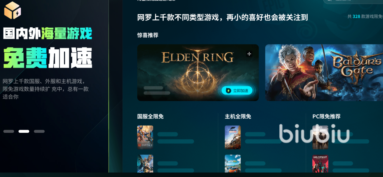 biubiu加速器不仅支持国内玩家常玩的各种热门游戏,还针对不同类型的游戏进行了优化,确保每一款游戏都能获得最佳的加速效果。无论你是在玩《绝地求生》这样的竞技类游戏,还是在体验《魔兽世界》这类角色扮演游戏都可以使用这款加速器。