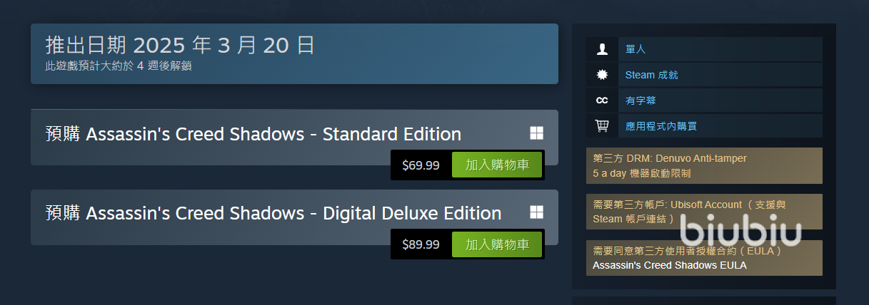 刺客信条影发售价格多少 刺客信条影发售平台介绍