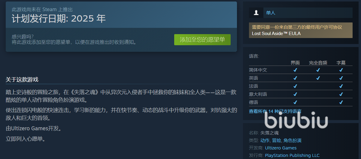 目前,《失落之魂》还未正式上线。大家可以先进入Steam商店界面,将游戏点击加入愿望单。这样一来,等游戏正式发售,或是碰上限时打折、降价活动时,都会收到贴心的邮件通知,不会错过任何入手的好时机。