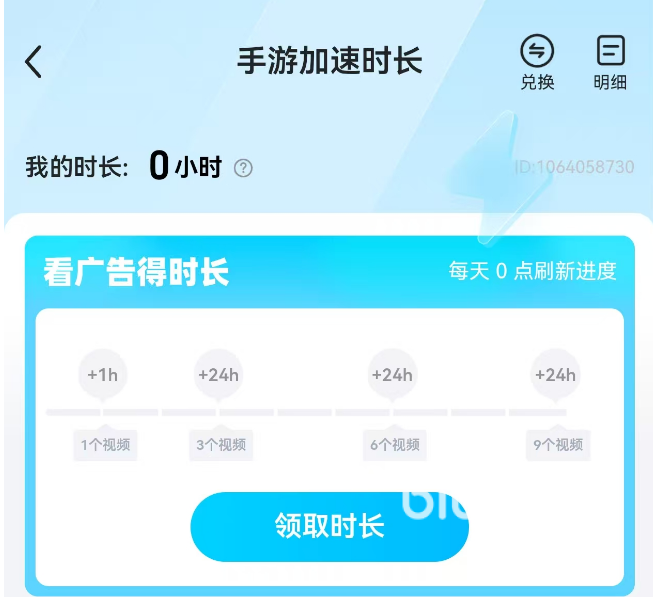 但是时间用起来其实很快的,打的投入,连续上分很快就用完了。然后大家有个好方法能得到更多的时间。那就是看视频得免费时长了,一天坚持看3个,就能够继续免费加速1天了。
