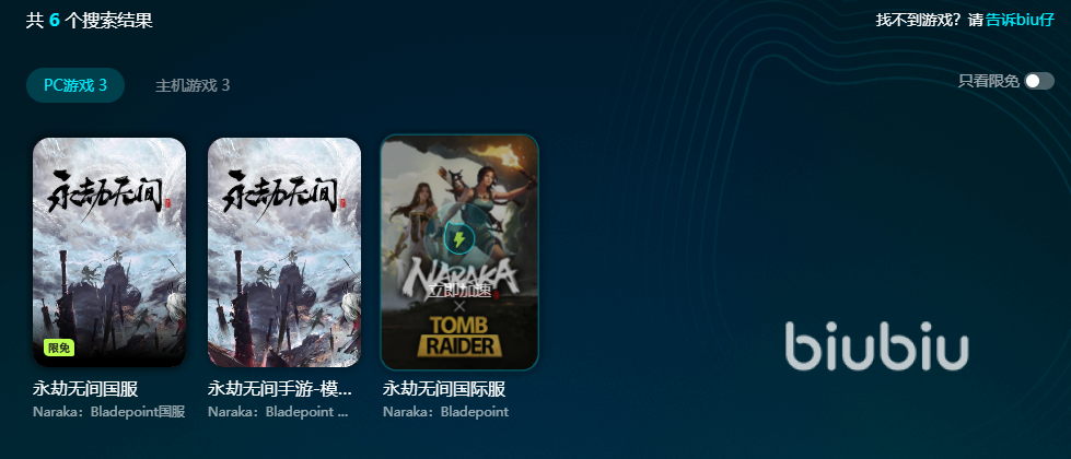 如果你也被《永劫无间》的闪退问题所困扰,不妨试试biubiu加速器。它凭借强大的网络优化能力、简洁易用的操作界面、丰富的增值服务和亲民的价格,很可能成为你解决游戏闪退问题的得力助手。让biubiu加速器为你消除游戏中的障碍,助你在《永劫无间》的世界里畅快遨游,尽情展现你的高超武艺,收获满满的游戏乐趣。
