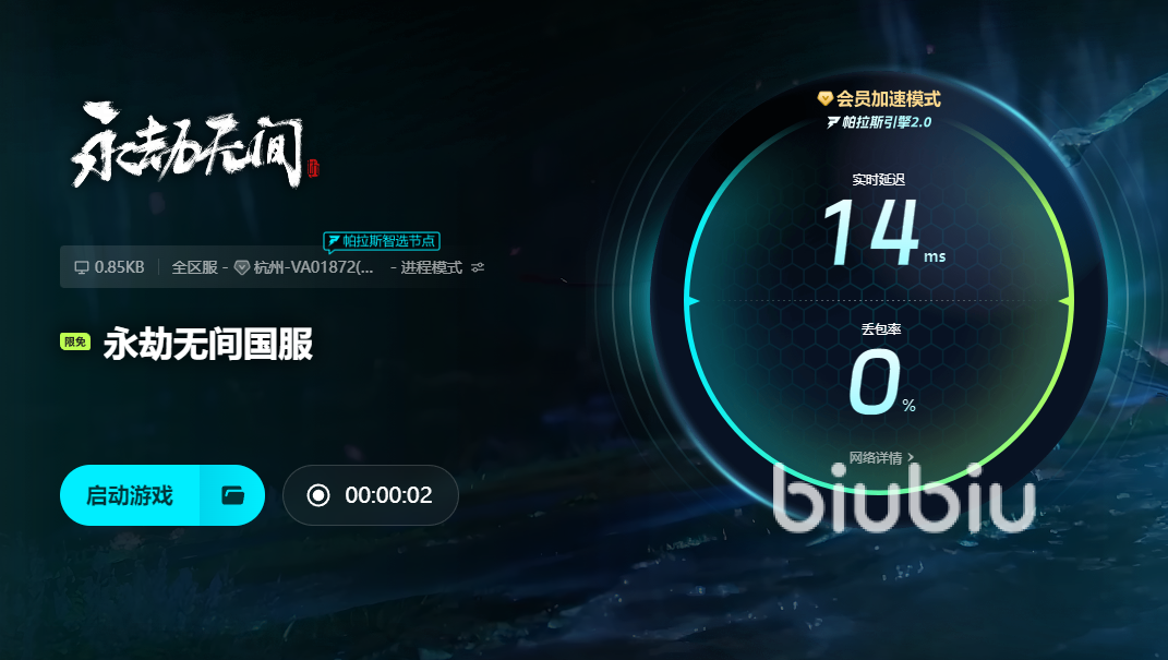 biubiu加速器是一款专业的游戏网络优化工具,它在解决游戏闪退问题上有着出色的表现。biubiu加速器通过对网络进行深度优化,能够有效减少因网络波动导致的游戏闪退情况。它拥有遍布全球的优质节点,智能算法会根据玩家的网络环境,自动匹配最佳节点,确保网络连接的稳定与流畅。稳定的网络是游戏稳定运行的基础,biubiu加速器就像一位可靠的保镖,为游戏数据的传输开辟出一条绿色通道,让游戏运行更加稳定。在实际使用中,许多玩家反馈,在使用biubiu加速器之前,玩《永劫无间》时频繁闪退,一局游戏甚至可能闪退好几次,根本无法正常游戏。但在使用biubiu加速器后,情况得到了极大改善。加速器强大的网络优化功能,使得游戏网络环境变得稳定,闪退现象大幅减少,甚至很多玩家表示再也没有出现过闪退情况。他们能够全身心地投入到紧张刺激的战斗中,尽情施展各种炫酷技能,享受游戏带来的快乐。