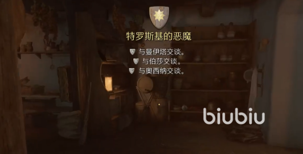然后有个选择环节,可以把塞米的事情说出去,也可以保密。然后去找领主进行汇报任务,这个过程中可以开启恶魔分支任务,需要跟曼伊塔,伯莎,奥西纳进行交谈。然后交代审讯结果,继续推进任务。