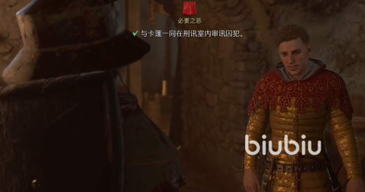 我们先找到汉斯进行交流,跟他沟通下对于行刑的看法,然后两人一起去刑讯室去囚犯。光是口头警告显然逼问不出来什么信息,在进行刑具威逼之后,犯人也是交代出来背后的指使人是奥达·塞米,审完之后卡蓬也是表达了自己并不是很喜欢这样审讯犯人。
