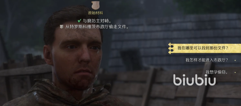 赶路的过程中可以看到磨坊的,停下来跟磨坊主对话开始任务,我们需要找原材料并且完成一场缠斗,在任务过程中会有对话,如果我们能够从特罗斯科维茨市政厅这里偷走文件,他就会帮助我们参加婚宴,完成得知关键人物就是铁匠,找他开启下一轮任务。