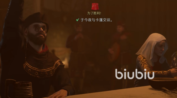 宴会上面还需要跟亨利,汉斯·卡蓬,以及冯·贝尔戈还有乌尔里这些人交谈,然后再去找汉斯聊天,结束之后就可以自由活动了。根据自己当前的情况做支线,然后找约翰卡的寡妇交流,选择共度一夜之后可以得到时光飞逝的增益效果。