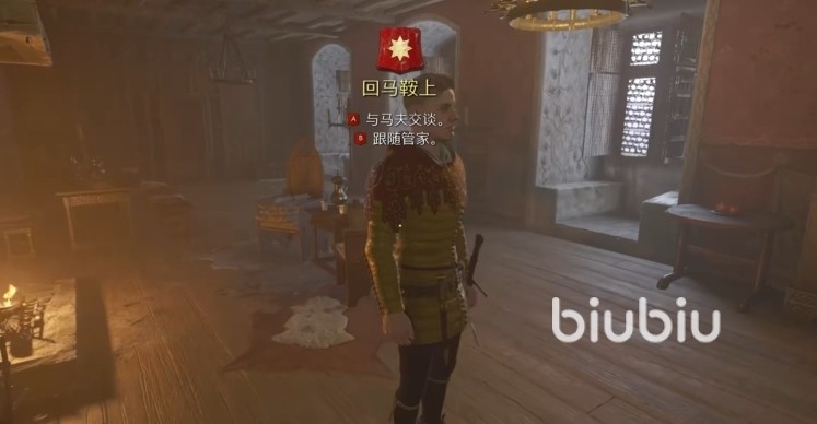 在这一章节当中,骑士需要回到马鞍上,重新上路了。我们跟马夫进行交谈,或者是跟着管家来拿回自己的装备都是可以的。推荐大家先去拿装备,管家在路上会跟我们进行对话,并且提示玩家这里跟迷宫一样,一定要跟紧他不要迷路了。到屋子前,管家就会让我们进去,自己开箱子即可拿到一套装备,点开背包装备上就好了。