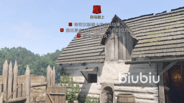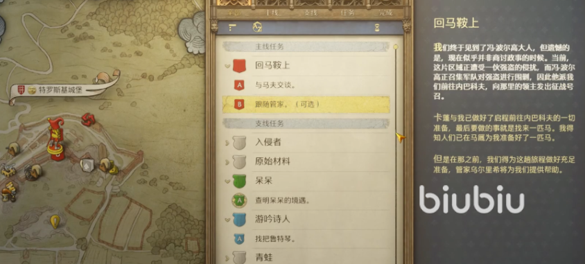 前进过程中,路过树林是会触发任务的,我们需要找到“溃疡”营地。接下之后继续交谈,跟随少主,然后到达内巴科夫,接取任务,我们要等待汉斯的会谈结束,去找到更多这里马匹的相关消息。