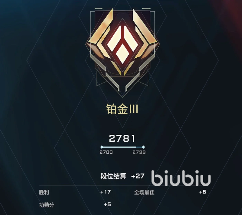 目前的排位设定是比较常规的,最低段位叫做青铜,再往上一个段位是黄金,第三个段位是铂金,之后还有钻石,段位的设定和很多竞技游戏的设定其实是差不离的,在每个大段位之下,还有小的段位,比如铂金三,可以再晋升小段位到铂金二,之后是铂金一,通过小的段位晋升到大段位。