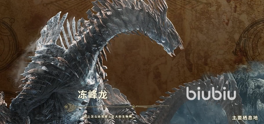 更让人期待的是生态顶端的冻峰龙,虽然目前还未确定其是否为古龙种,但它那庞大的体格和强大的气场已经让人感受到了它的威胁。它能够喷射出强大的冻气,瞬间冻结周围的区域,给玩家带来极大的挑战。在极寒的环境下,冻峰龙的冰晶外壳会变得更加坚硬。