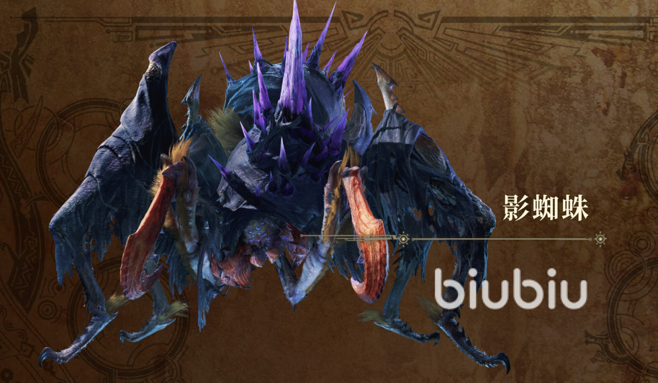 还有初登场于MH4的影蜘蛛。作为系列第一只铗角种,被猎人们称为暗杀者。它的武器可能会以毒、眠为主。想走异常流配装的化可能要经常打蜘蛛。