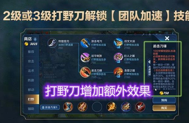 这一个就没啥好说的,3级打野刀将会带来队伍提速特效,即是奔狼纹章与打野刀糅合了,让打野也可以具有特定的队伍用途。