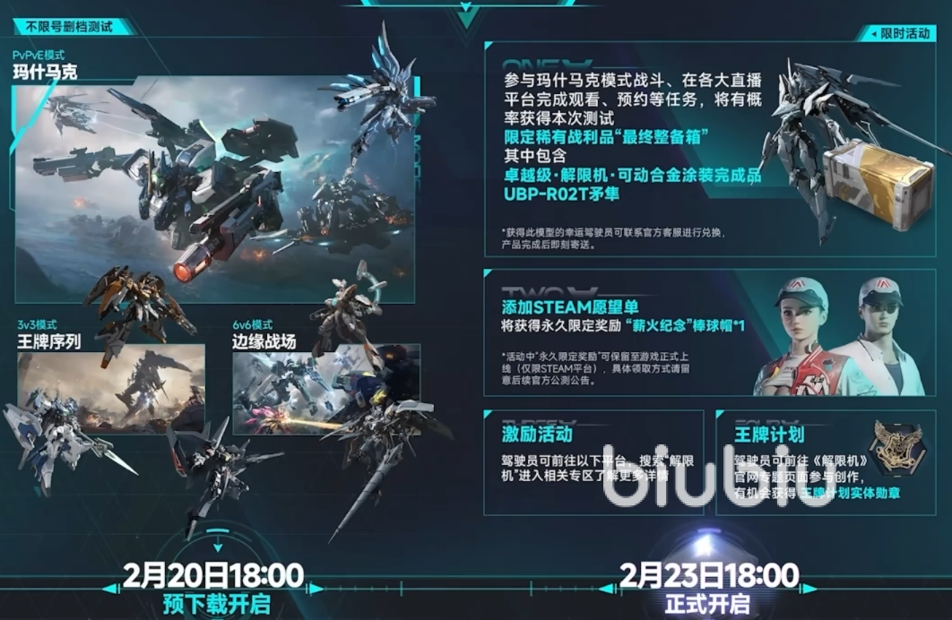2025年02月26日 13:51 来源:重弩又乘龙虽然解限机还没有正式上线,但最近开启了新一轮测试,也是一并推出一些限时活动。如果还不知道解限机最新活动有什么,那么不妨来看看下面的介绍吧!虽然游戏还没正式推出,但是参与这次demo测试的玩家都可以参与游戏内举行的活动,拿到奖励并带到正式服。