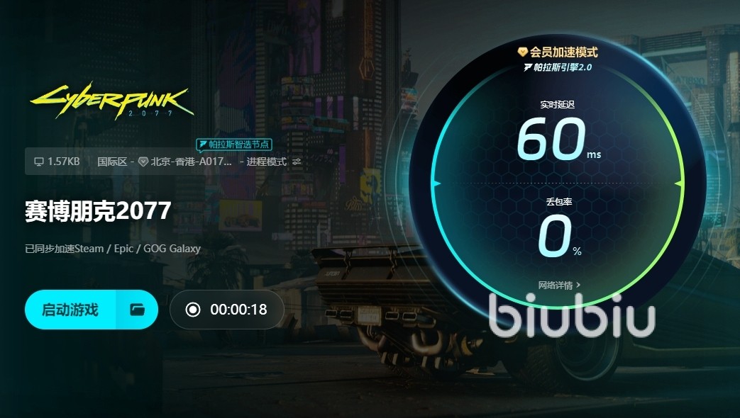 可以说biubiu真的非常强大,它能让我们战斗变得更加顺利,有效的解决卡顿掉线的问题。而且很多游戏都是可以一键入库的,让玩家们都能畅玩更多外服网游,那么今天给大家整体的赛博朋克2077掉帧怎么办就介绍到这里了,有这方面困扰的小伙伴就赶快去尝试下载biubiu吧。