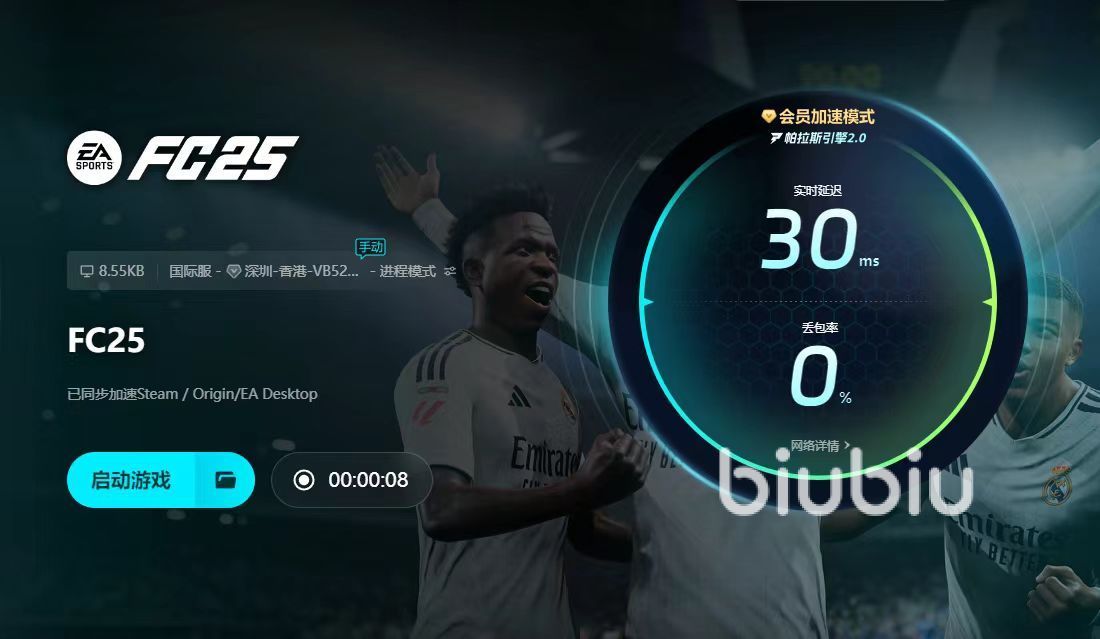 2025年02月26日 17:47 来源:亡灵离六尾1fc25作为FIFA的系列新作,它优化了网络足球竞技模式。玩家们通过任务、抽取等方式获取球员,然后组建专属阵容。游戏汇集了一大批球星,因此,足球迷们为之疯狂。本文小编分享一下fc25掉帧严重怎么办。fc25掉帧情况经常发生,大家务必安装一款加速器。Biubiu是行业排名前几的工具,它效果稳定,专门为游戏发烧友设计。