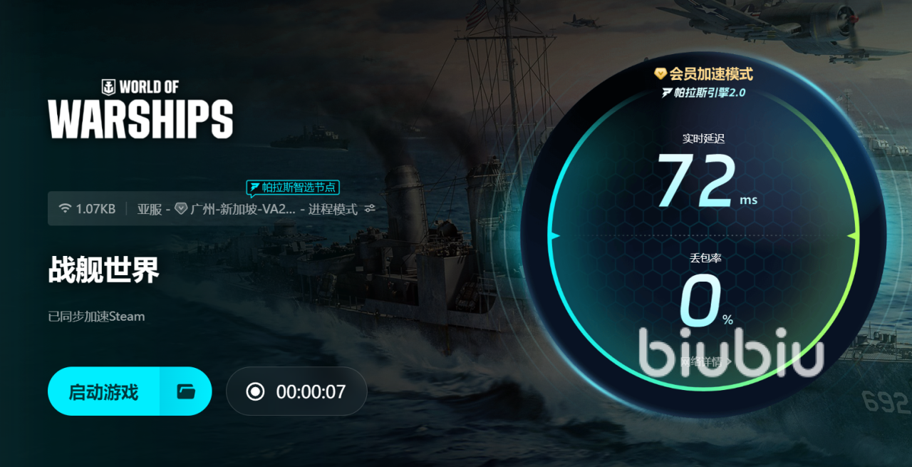 目前这就是小编提供的战舰世界免费加速器有哪些的全部信息,战舰世界对抗形非常强,而且很容易发生团战,那场面就是炮火轰鸣,一旦卡住的话就直接消失了,所以使用biubiu提升网速很关键哦!