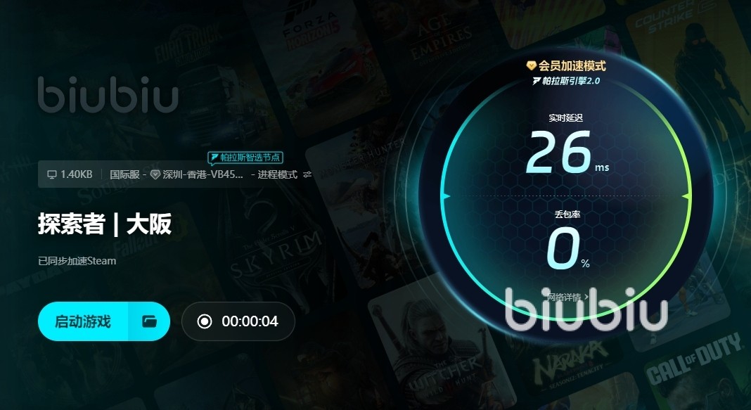为了让小伙伴们去清楚地了解自身当下的游戏加速效果,Biubiu加速器在加速界面提供了详细的数据对比,它会实时追踪玩家网络延迟以及丢包率等关键数据,这样一来,各位就能明确知晓自身网络是否存在卡顿情况,即使在游戏运行过程中,也无需担忧节点拥堵的问题。
