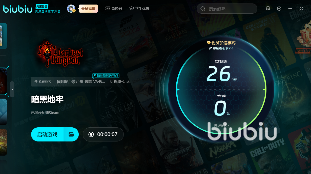 暗黑地牢作为一款全球知名的回合冒险大作,如今暂时没有上线国服。这时我们可以借用biubiu,通过加速后,自然能被魔法师传送至此地开始冒险。新用户的话可领取3小时的免费加速,另外新老用户通过【biubiu不卡顿】,就能额外领取三天免费加速。要是遇到一些怪物或者陷阱时太卡的话,可能导致全军覆没。用了加速器后,自然能够稳定从容地应对这些突然起来的危机。