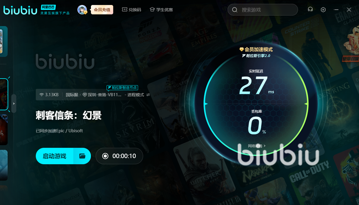 刺客信条幻景一款全世界都爱玩的动作游戏,暂时没有上线国服。为了成为一名真正的刺客,我们还要用上biubiu,加速后才有资格成为一名刺客。新用户的话,可获得3小时的免费加速。另外新老用户输入【biubiu不卡顿】,又能额外领取三天免费加速。若是在躲避敌人的追击时太卡的话,又无法让你全身而退,从而导致任务失败。这时最好用上加速器,提速过后才能从千军万马中脱颖而出,避免血洒沙场。