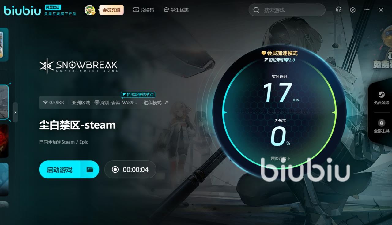 biubiu还为新人准备了贴心见面礼,新用户注册可领取3小时免费加速时长,无压力地感受在尘白禁区的优化效果。此外,无论是新用户还是老用户,只要输入【biubiu不卡顿】的口令,就能兑换三天免费加速时长。