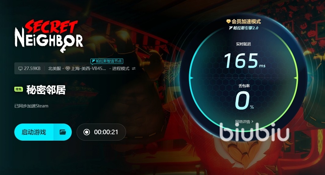 2025年02月26日 17:31 来源:西兰过小磁怪秘密邻居是一款非常火爆的多人冒险类游戏,拥有悬疑的画风,还拥有更多恐怖元素,让玩家们能够置身其中,最近就有一些小伙伴问到了秘密邻居加速器下载推荐哪个比较好?大家在体验游戏的过程中,如果不借助加速器的帮助,就很难顺利连接。不但会出现卡加载界面的情况,甚至游戏挑战也无法顺利进行,这个时候小编就推荐大家直接下载biubiu,这个平台的优势是非常明显的,接下来小编也将给大家做个详细的介绍。