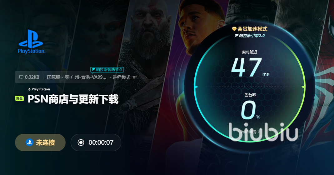 会员模式下我们享受的服务质量是更加的,延迟超级低,这是因为大家使用的网络已经被稳定下来了,而且架构出来一条比较高效的通路,biubiu还自动帮助我们选择了最好的节点,状态是快速又稳定的,想玩枪战类,大逃杀类的游戏网速都够用,比如说《绝地潜兵》这种,都是放心玩的。