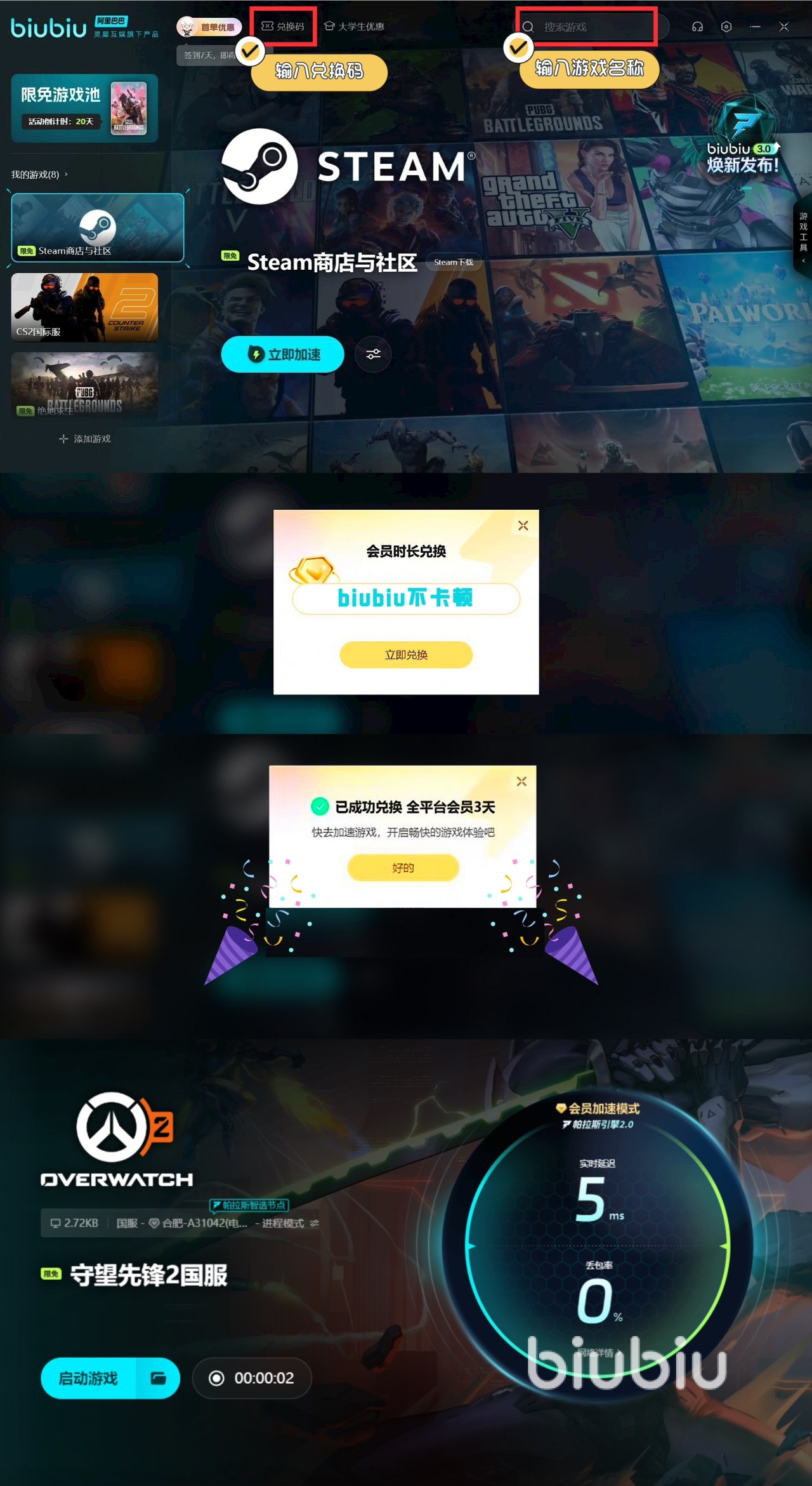 首先,存在一个奖励机制即连续登录奖励。从2月19日游戏开服起,连续7周内,玩家只需每周登录,即可领取一个对应赛季的神话皮肤,这些皮肤都是极具收藏价值的。此外,玩家还将获得该赛季的免费及付费高级战令的全部奖励,总共包括7款满级神话皮肤和568款个性化物品。这些奖励的丰富程度足以让玩家心动。为了确保玩家登录的稳定性,减少登录掉线的现象,建议使用biubiu加速器进行网络优化。目前,这个加速器为每位玩守望先锋2国服的新用户玩家提供了3小时的免费试玩时间。同时,玩家还可以通过输入【biubiu不卡顿】兑换码,额外获得72小时的体验时间。整个体验过程备受好评,因此,如果对此感兴趣的玩家,不妨点击上方链接进行下载。