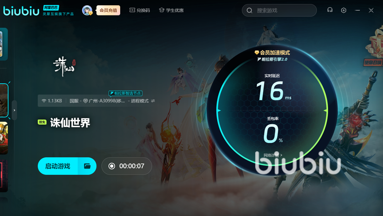 诛仙世界中的画质特别高,没有好的网络很难渲染出精致场景。这时可以尝试利用biubiu,网络变好后便可解锁更高画质,让你体验如诗如画的云雾缭绕的仙境。对于新用户来说的话,可领取3小时的免费加速,如此便可试玩一下;另外新老用户输入【biubiu不卡顿】,可额外领取三天免费加速。如果在PK过程中延迟过高,很难躲掉对方的爆发技能。用上加速器后,即可从容不迫的解决对手中最为棘手的奶妈。