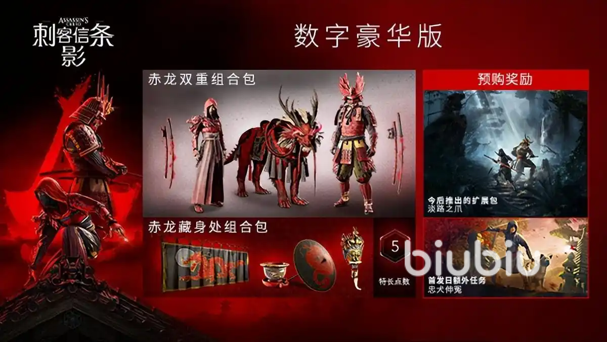 刺客信条影的豪华版,目前在国区steam上的售价为448元,此外还有其他版本,例如ps港服售价698港元,XBox港服售价为699港元。相比于这款游戏的标准版售价为348元,豪华版有着100元的差价,那么这100元可以获得哪些额外的内容,就成为是否值得大家入手的关键。在豪华版中,除了拥有标准版的所有内容之外,还有赤龙双重组合包和赤龙藏身处组合包,以及5个特长点数。现在购买豪华版,当然会有相应的预购奖励,包括淡路之爪DLC以及忠犬伸冤任务。这个DLC可以让玩家在游戏中前往一个名叫淡路岛的地方,夺回失落的历史宝藏。