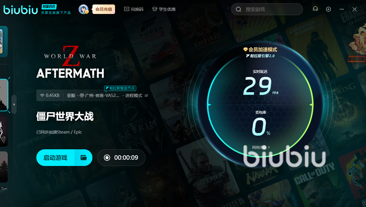 僵尸世界大战作为一款老少皆宜的全球知名大作,如今暂时仍然没有国服。为了与全球的人一同对抗僵尸的话,又要用上biubiu了。加速过后,才会被送至末日僵尸世界中。新用户的话可领取3小时的免费加速,然后新老用户通过【biubiu不卡顿】,又可额外领取三天免费加速。刚开始发育时太卡的话,可能没有收集足够强的装备以及物资之后就会被消灭了。用上加速器后,才有机会以更快的节奏快速进行发育。