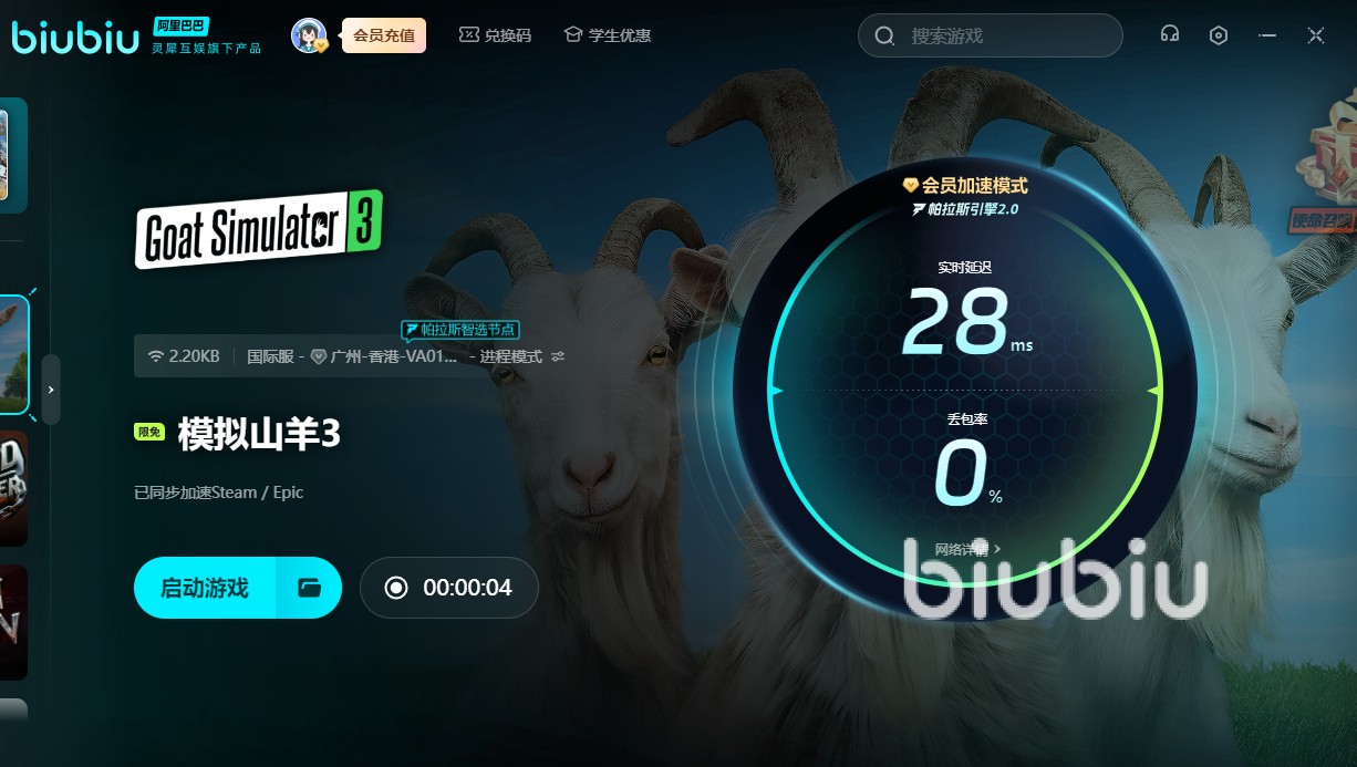 模拟山羊3作为一款动作冒险大作,如果突然卡住的话,就无法继续探索世界了。这时推荐用上biubiu,如此才可娴熟的操控手中的山羊,避免跌落陷阱。新用户的话可获得3小时的免费加速,另外新老用户通过【biubiu不卡顿】,额外获得三天免费加速。要是驾驶各种奇葩工具延迟高的话,就很容易撞到墙或者冲入河中。用上加速器后,又可根据你的操作快速冲出地球!