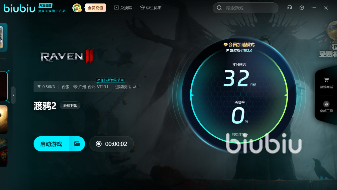 对于未曾用过这款软件,不熟悉操作的玩家,biubiu提供智能化体验。大家在首页直接搜“渡鸦2”,找到对应游戏后一键启动,轻松且便捷。你可以在启动时自由选择心仪的区服,全方位地满足了不同地区玩家对网络优化的需求,让你轻松畅玩。