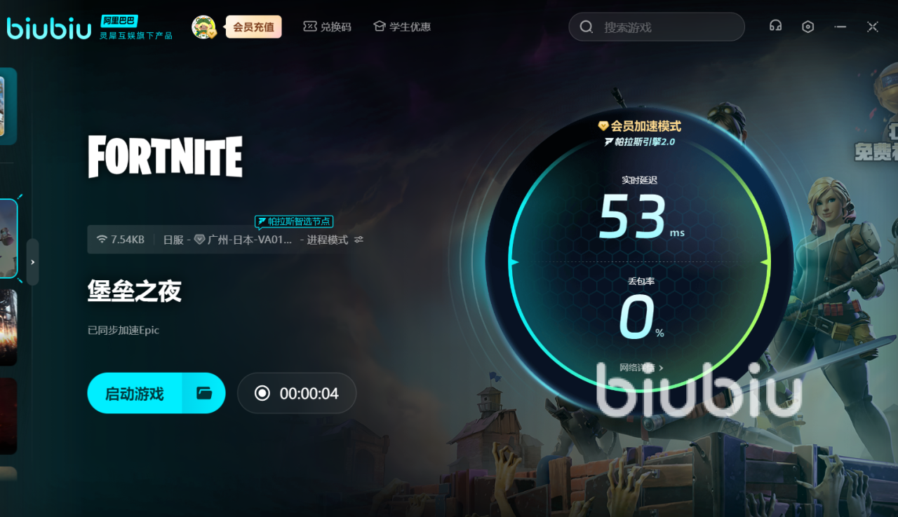 作为一款融合了建造与射击的百人战术竞技射击游戏,《堡垒之夜》的独特之处在于,胜利并非仅仅依赖于精良的武器装备,灵活多变的建造系统同样是制胜关键。在这个充满挑战的世界里,稳定的网络至关重要。然而,由于该作画质高清,在线对战人数众多,网速不佳时,玩家往往很难顺利进入游戏,更别提加载战斗了。这时,biubiu加速器就成为了玩家的得力助手。