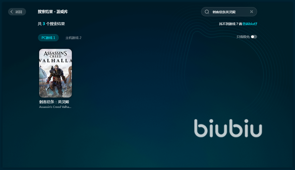 在有了biubiu之后,大家就再也不用担心刺客信条英灵殿掉帧怎么办了吧,这款操作简单,价格优惠功能却非常强大的加速软件,能够陪伴大家一起进行游戏。非常建议直接开启全年,这样只要能搜索到都可以进行优化,绝对是大家玩游戏的好帮手。