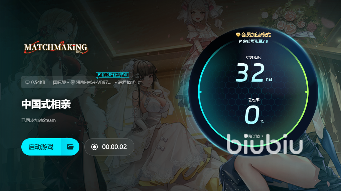 在各种精心编造的故事之下,满足玩家对恋爱游戏的种种喜好,最终真正喜结良缘。只是畅玩时经常都会被闪退所影响,正是由于此游戏在steam平台上运行,想要享受流畅的体验就需要与steam服务器顺畅连接,服务器没有在国内,因此只能借助加速器来改善并优化网络,众多加速器中小编推荐使用biubiu。